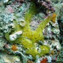 This is probably a young specimen of H. magniconulosa. The encrusting form and smooth surface may be associated with its location under a rock. H. magniconulosa is normally more massive with an irregular, rugose surface, and usually has pink to green tinges mixed with the yellow tissue. Otherwise, this specimen approaches H. magniconulosa more closely than other described species of Halichondria. The notation “cf.” indicates that the identity has not been confirmed. |